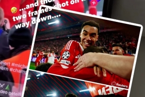 体育资讯4月17日讯 拜仁在本轮欧冠主场4-3逆转绝杀皇马,迪亚斯和奥利塞在比赛最后时刻连续轰出两脚精彩世界波,也引燃了整个安联球场,奥利塞进球后终场哨随即响起,部分激动的拜仁球迷甚至冲进了场内,导致摄影师受伤。